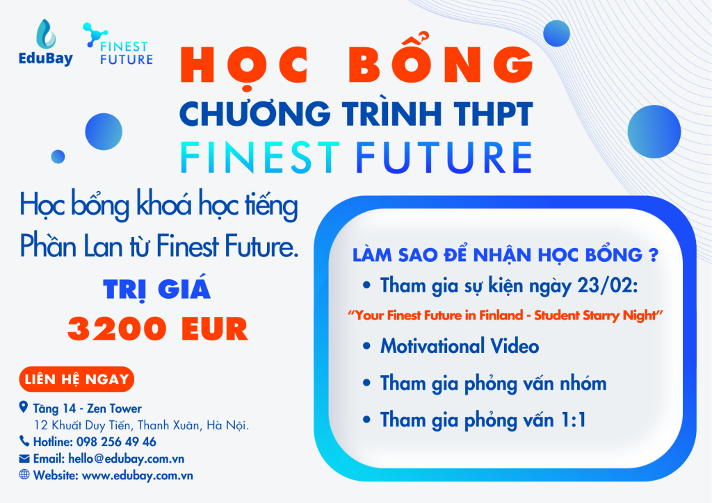 Hiện đang có Học bổng tiếng Phần tới từ FinestFuture trị giá 3200EUR cộng thêm MIỄN TOÀN BỘ HỌC PHÍ Du học Phần Lan